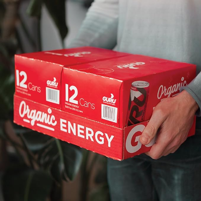 GURU Original Organic Energy Drinks, Clean Energy Drink with Plant Based Natural Caffeine from Green Tea, Gluten Free and Vegan, 140MG Caffeine, Healthy Drinks, 12oz (Pack of 24)