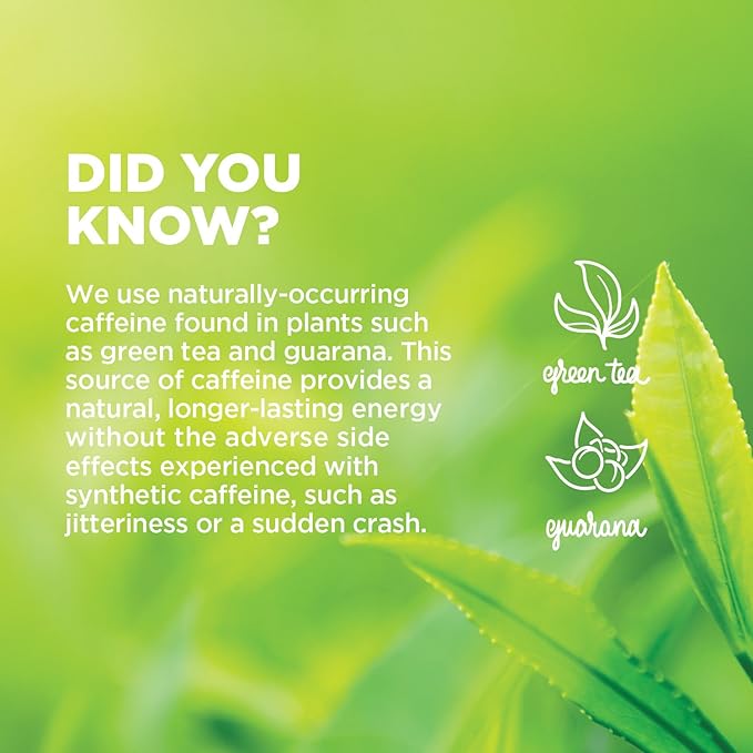 - 140 MG NATURAL CAFFEINE THAT LASTS: Use as pre workout drinks or anytime you need a pick me up. GURU Original 12oz has 140mg of caffeine per can and supports increased concentration, physical vitality, and provides sustained energy with naturally occurring caffeine from green tea and guarana.