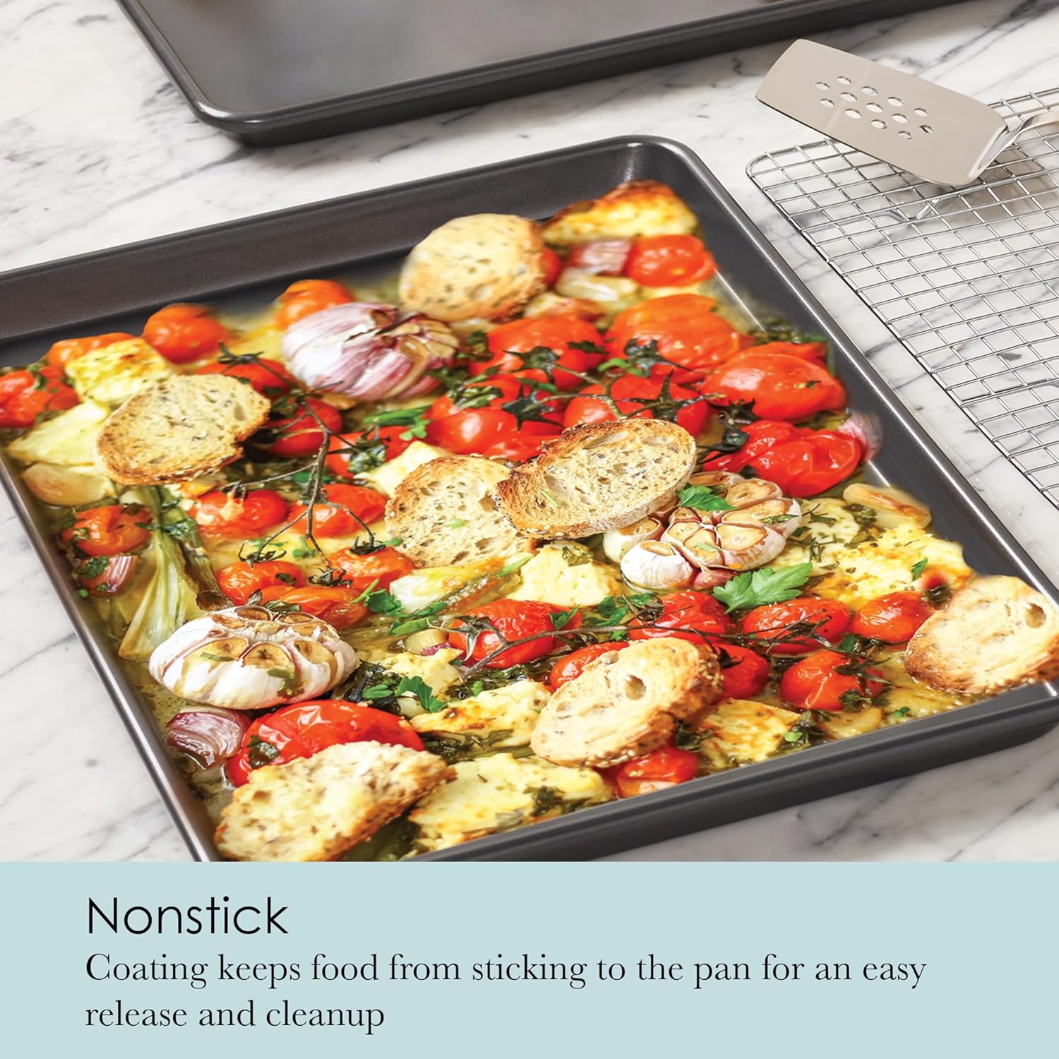 - NON-STICK COATING FOR EASY RELEASE: The Chicago Metallic Baking Sheets and Cooling Rack feature a non-stick surface. The non-stick coating calls for an exceptional baked good release and easy clean up