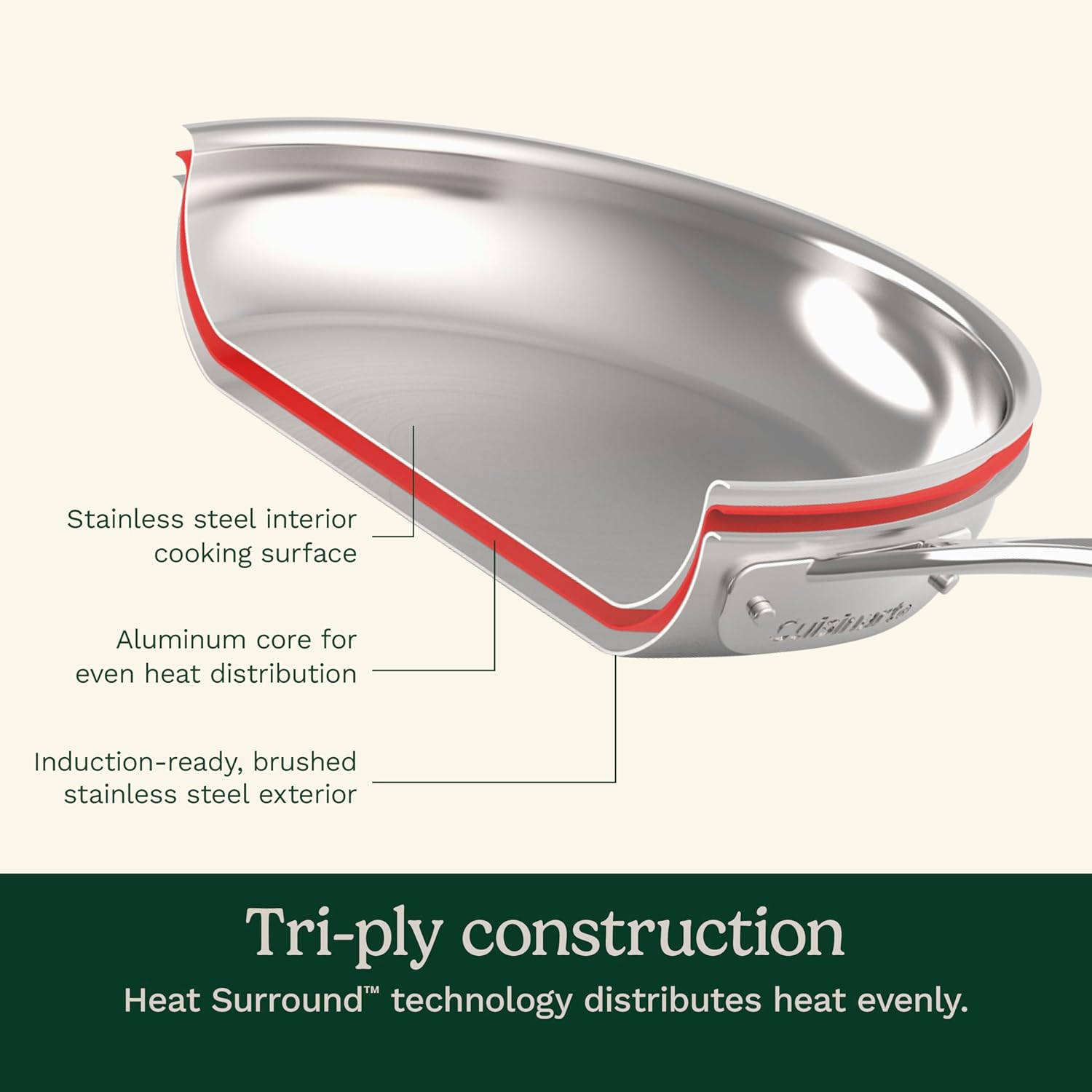 - DURABLE DESIGN: Professional triple ply construction features a core of pure aluminum and brushed stainless finish. Heat Surround technology allows for even heat distribution along the bottom and sidewalls of the cookware.