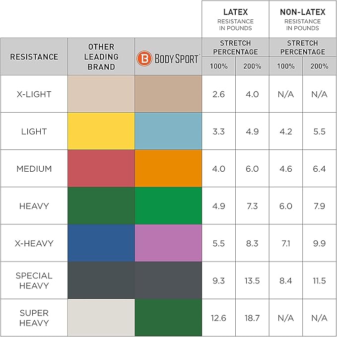 - VERSATILE. The Body Sport Exercise Bands are ideal for upper and lower body strength and resistance training at the clinic, at home, or on the go.
