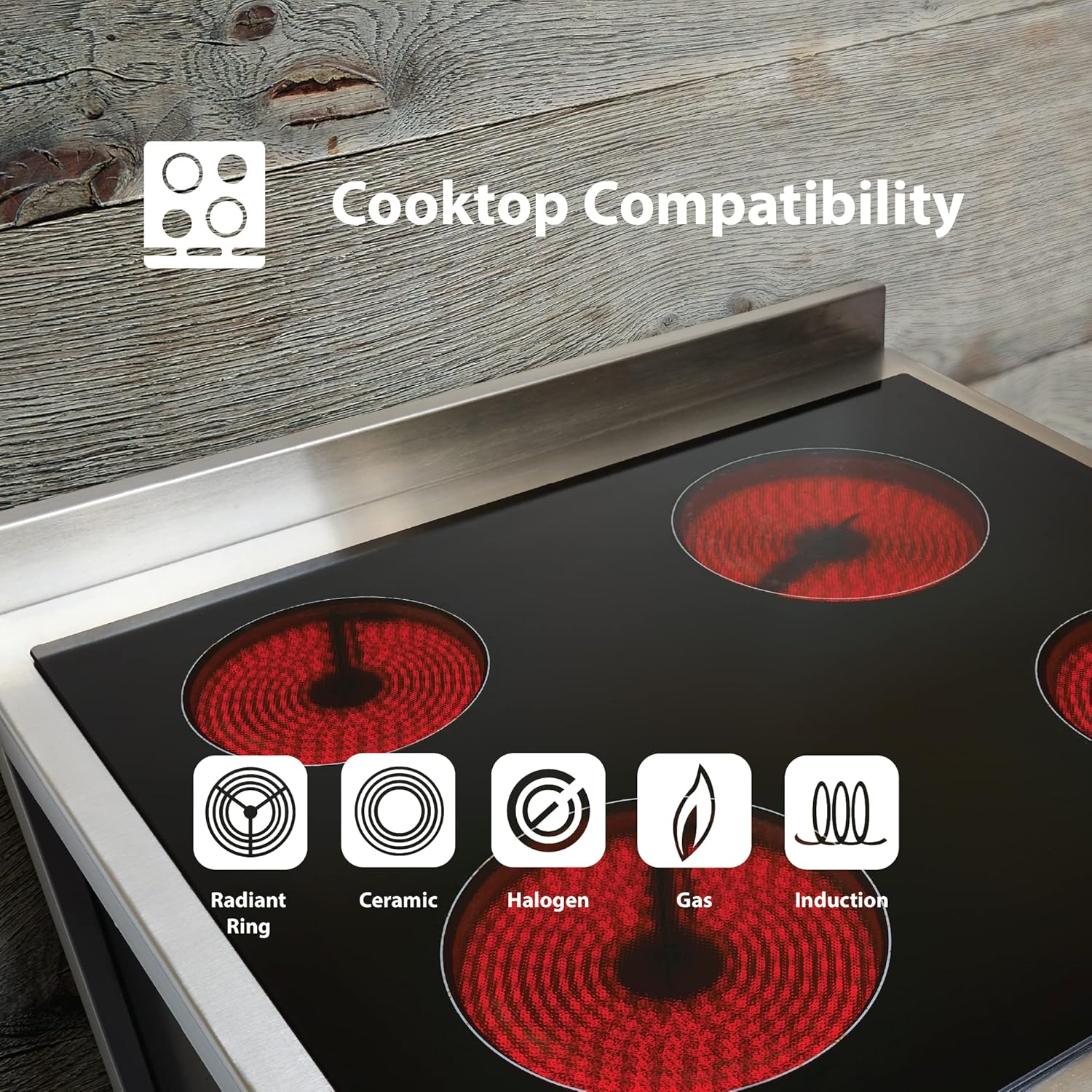 - Included: 9.5" Fry Pan, 9.5" Saute Pan with matching lid; Weight: 2.66kg (5.86lb); Oven-safe: Up to 500°F (260°C); Recommended Stovetops: Induction, Gas, Electric, Radiant Ring, Ceramic, Halogen