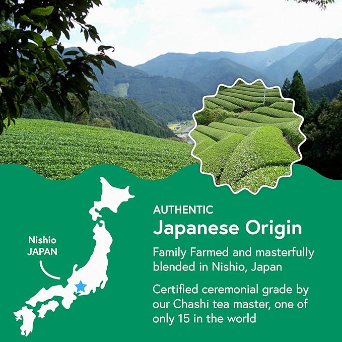 - Authentic Japanese Origin: Blended and crafted by our co-founder Max Fortgang, our matcha is certified ceremonial grade by our tea master in Kagoshima, Japan. Our tea master is one of only 15 in the world with a 10th level “tea master” or “chashi” certification, working to craft the smoothest ceremonial grade matcha in the world.