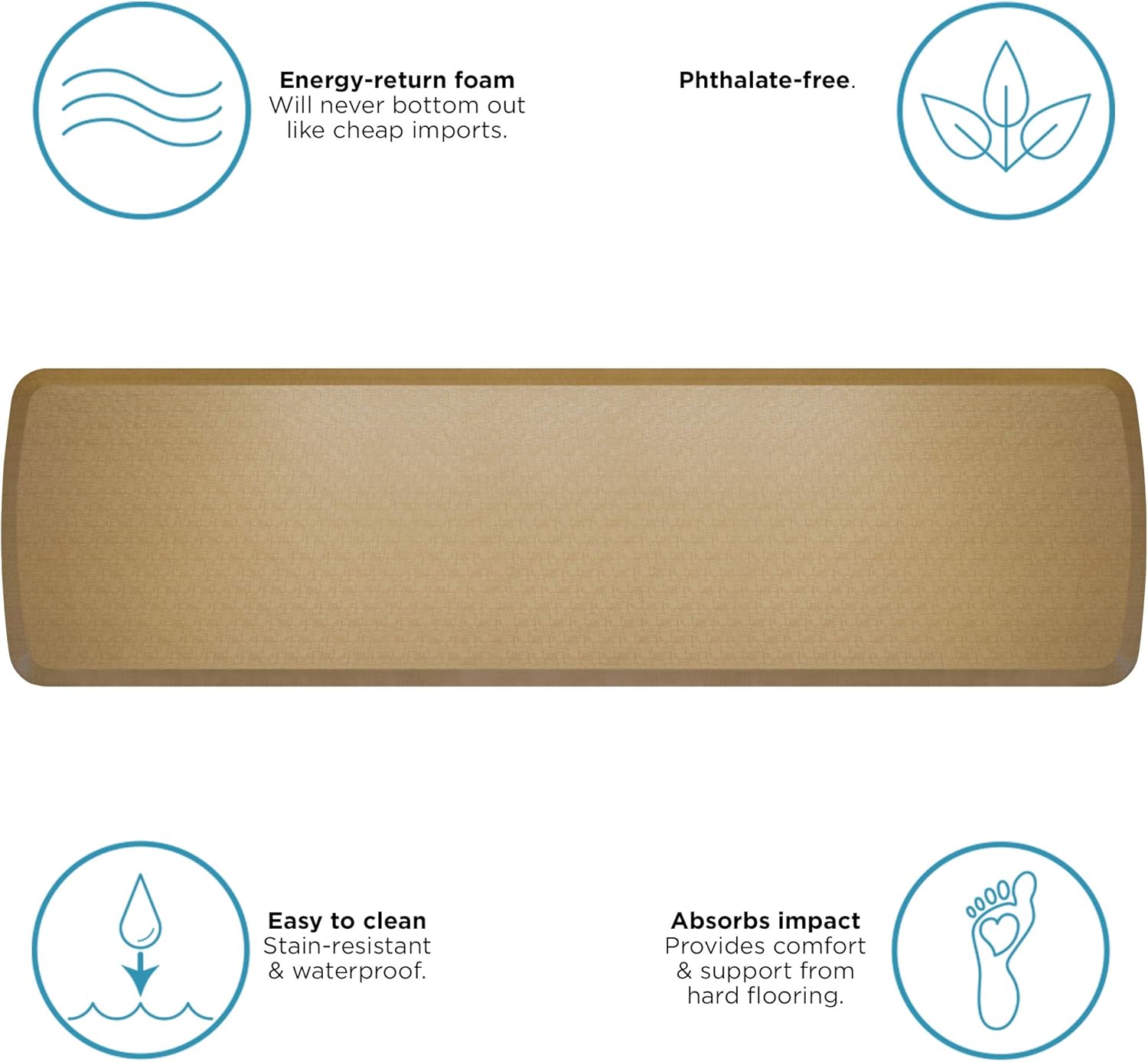 GelPro Elite Premier Anti-Fatigue Kitchen Comfort Floor Mat, 20x72”, Linen Khaki Stain Resistant Surface with Therapeutic Gel and Energy-Return Foam for Health and Wellness