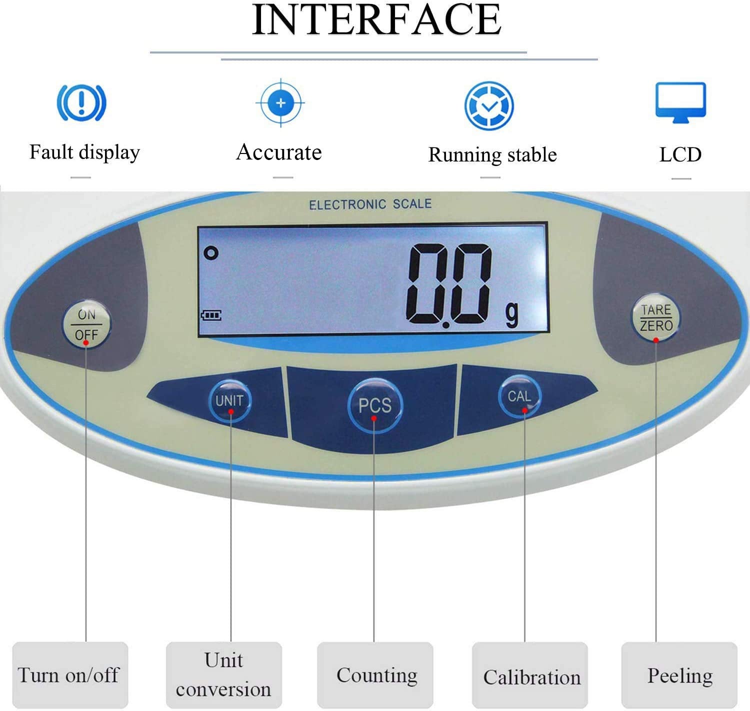 - Quality Material-The analytical balance is made of ABS body with 180* 140mm large stainless steel weighing pan, which is sturdy and durable.