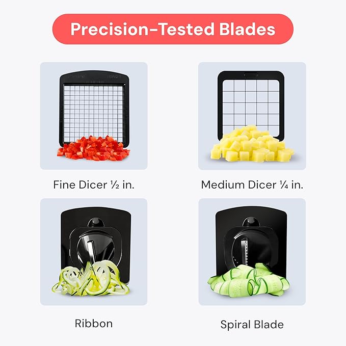 - Easy Meal Prep with Rust-Resistant Blades - Our vegetable chopper is perfect for anyone who wants to eat healthier but doesn't have a lot of time to spare. Dice potatoes, tomatoes, cucumbers, carrots, and more with the heavy-duty, rust-resistant blades. The 420 stainless steel blades retain razor sharpness for crisp, smooth dicing.