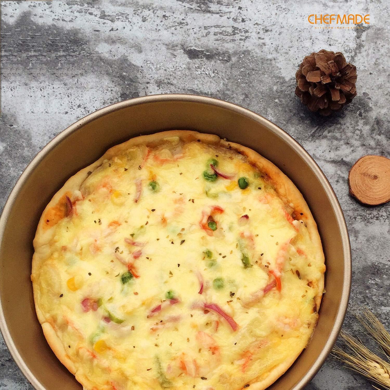 CHEFMADE 9-Inch Round Cake Pan, Non-Stick Deep Dish Pizza and Pie Bakeware for Oven Baking (Champagne Gold)