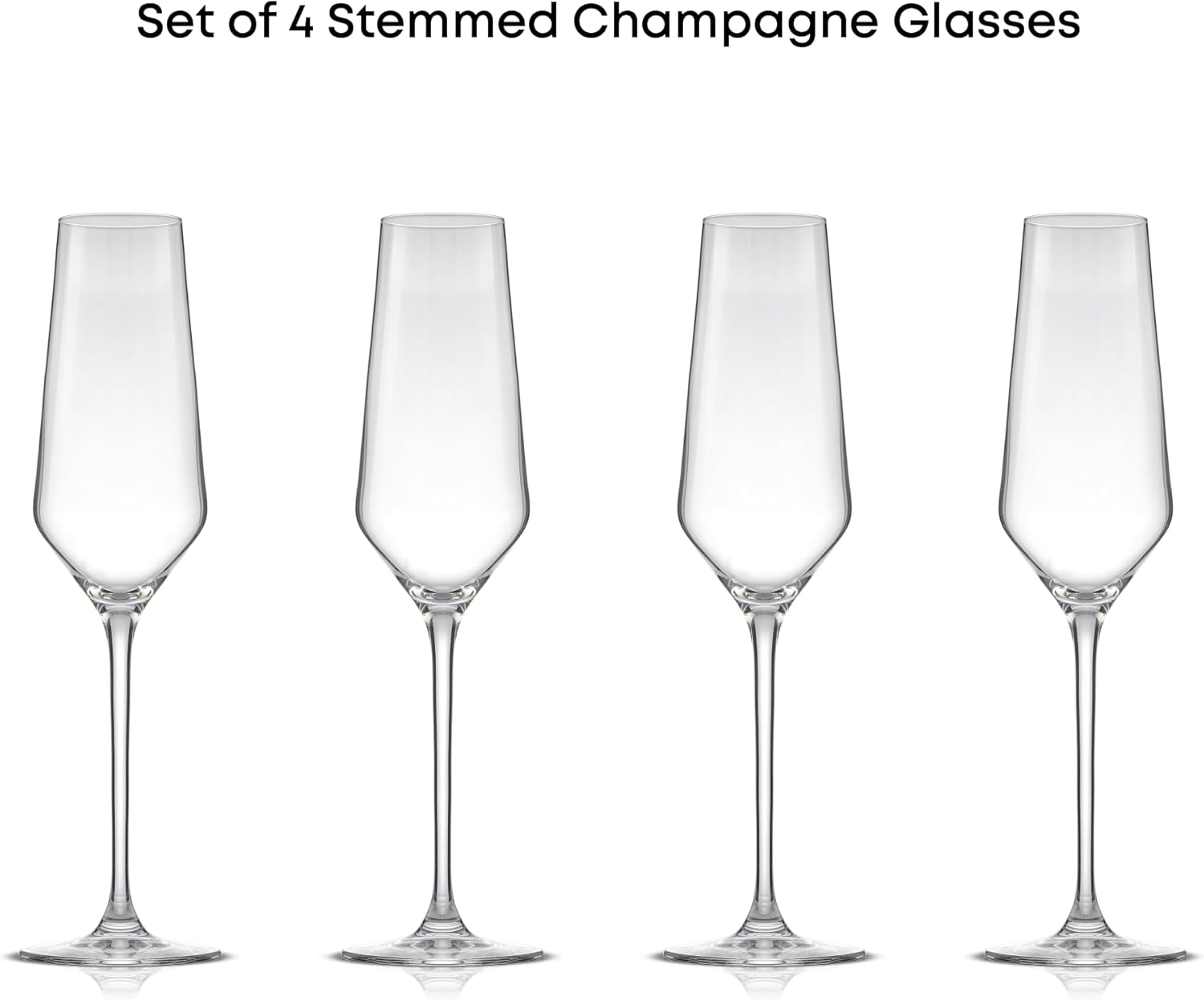 JoyJolt Champagne Glasses Layla Collection, Set of 4 – 6.7 oz Elegant Crystal Stemmed Champagne Flutes for Prosecco, Sparkling Wine, Mimosas, Cocktails, Weddings, Anniversaries, Parties
