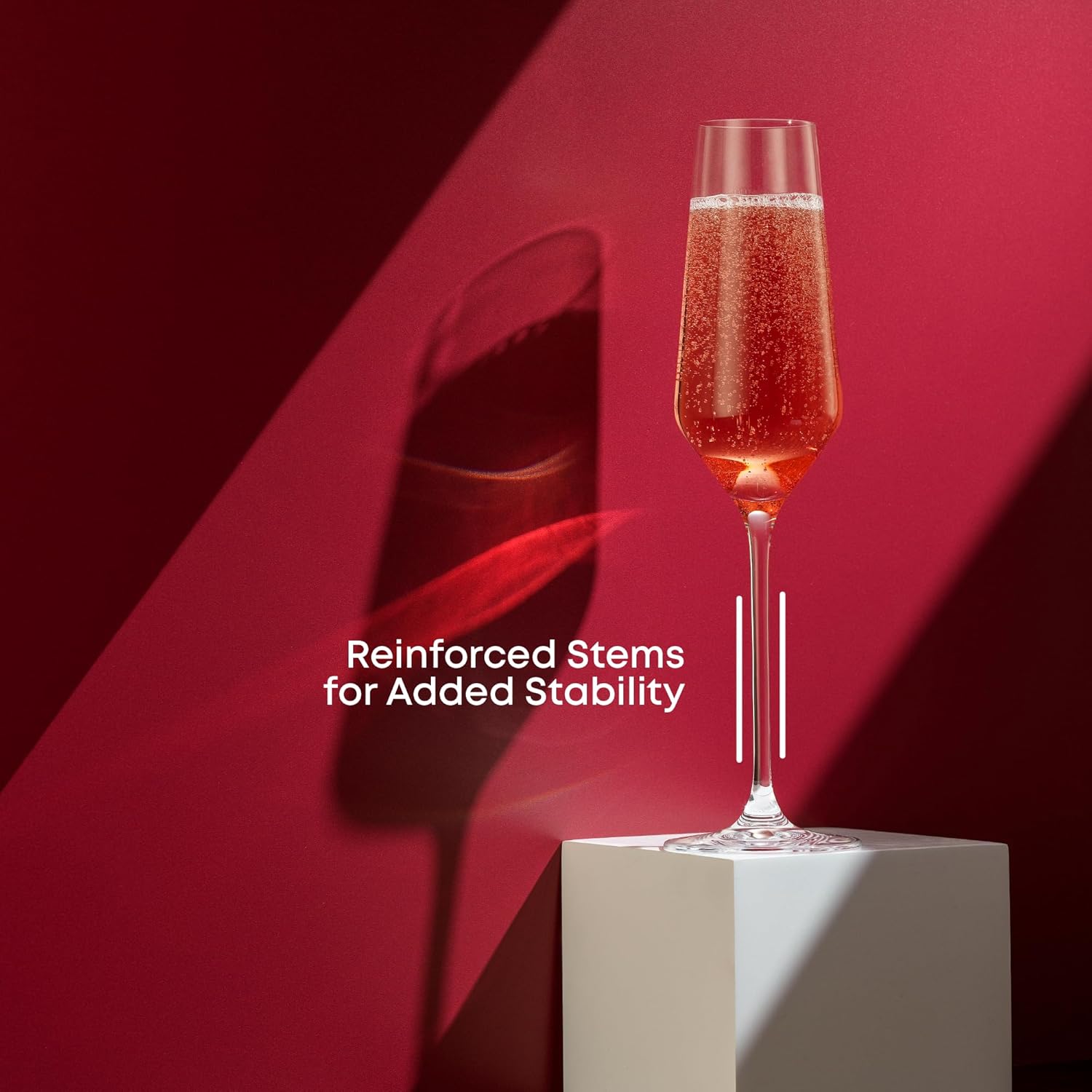 - UNIQUE DRINKING EXPERIENCE: These crystal glasses have an ergonomic design with reinforced stems for added stability, plus uniform rims which provide a comfortable drinking experience. The tapered design of the bulbs is meant to minimize bubble loss, allowing you to enjoy your favorite drink for longer!