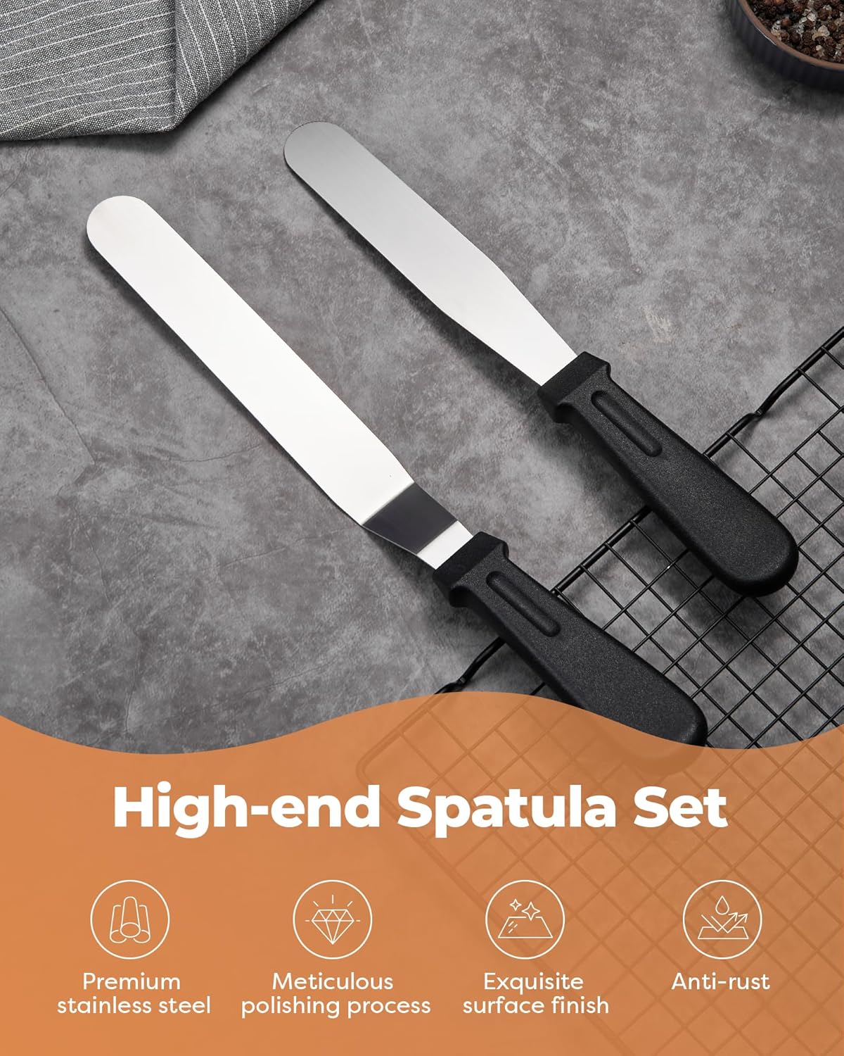 - Useful Baking Supplies: This set includes 3 high-quality STAINLESS STEEL comb icing scrapers, offering superior solidity over other icing smoothers. They ensure long-lasting use and enable the creation of various textures while smoothing cake sides. Additionally, a 12.5-inch angled spatula for the top and a 10.6-inch straight spatula for the sides ensure even crumb layers and smooth surfaces when used on a revolving turntable.