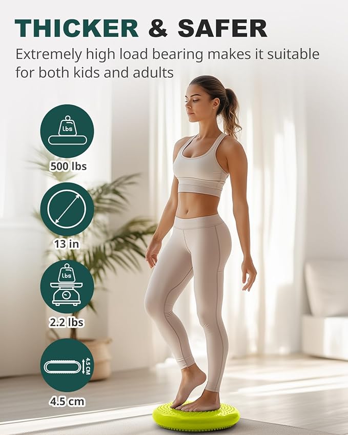 - 【Improves Balance & Core Strength】 - Use our balance disk during exercises such as standing on the balancing pod, and it can strengthen your core muscles and immprove your balance, coordination, and flexibility, And the non-slip grip can decrease the chance of ankle and knee injuries during workouts.