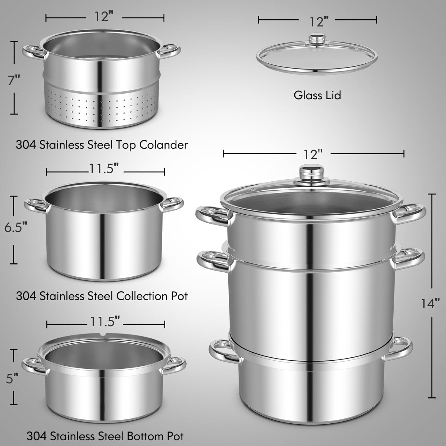 - š[Durable Stainless Steel Material]- Our fruit or vegetable juicer steamer is made of durable and long-lasting stainless steel which is clean and sanitary to ensure healthy and long-term use. Handles are all crafted of high quality stainless steel which is firmly welded on the steamer and brings you much convenience to hold and transport the juicer steamer.