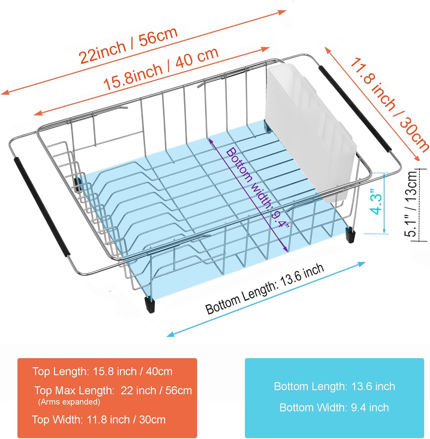 - ✔ EXTENDABLE & SUITABLE for Different Size Sink - The unit (collapsed) measures 15.8"(40cm) L x 11.8" (30cm) W x 5.1"(13cm) H, expands from 15.8" to 22.2" length to make it handy to place over a larger sink, fit your sink which is 16 to 22 inches length.