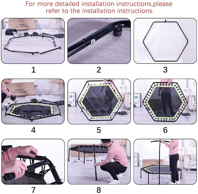- ☻Good Elasticity☻--- The bungee-rope design system with 42 thickened ropes which are 0.32"(8MM) of diameter provides joint-friendly suspension, reduces noise in maximum extent, affords more stability, and gives you a great jumping experience. Special tool is included for assembly.