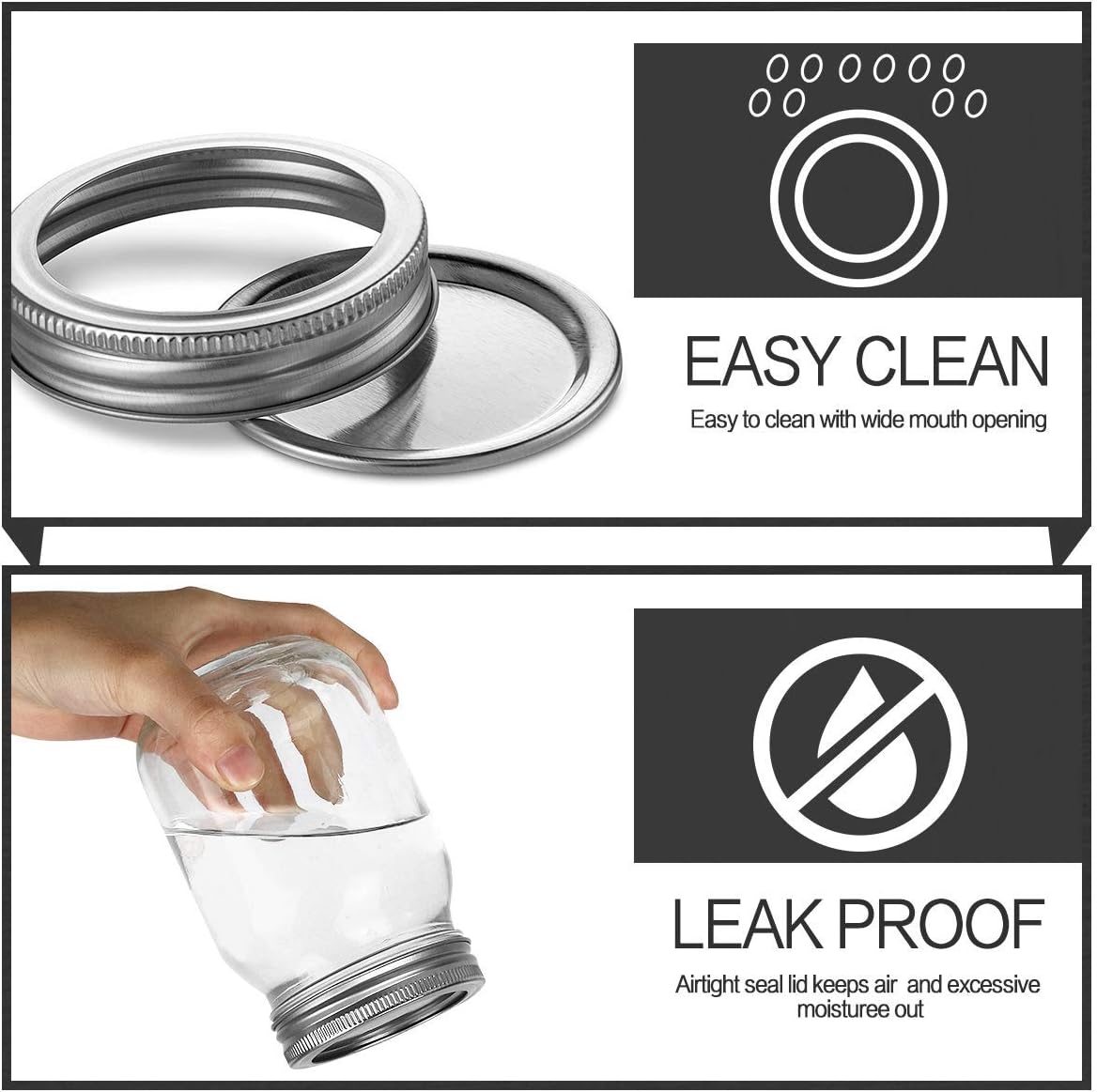 - 👉Classic & Elegant -- KAMOTA wide mouth glass jars have an elegant design and the transparent glass allows you to clearly distinguish what is inside. Each lid is expertly designed for ease of use and storage security. The included lids seal tightly to prevent leaks and preserve foods while still being easy to open and close.