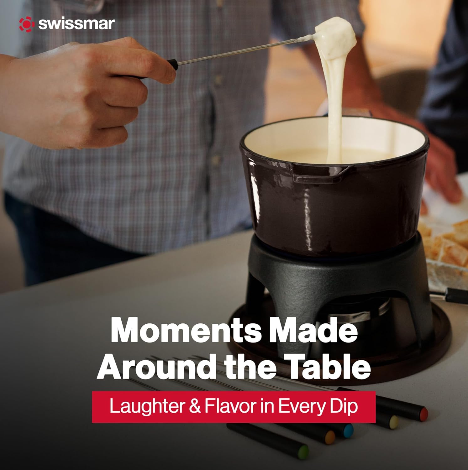Swissmar Sierra Cast Iron Fondue Set, 1.6 Quart / 1.6 Liter – Perfect for Meat, Cheese, & Chocolate Fondues – Ideal for Family Bonding & Hosting Gifts - 12-Pieces, Metallic Black