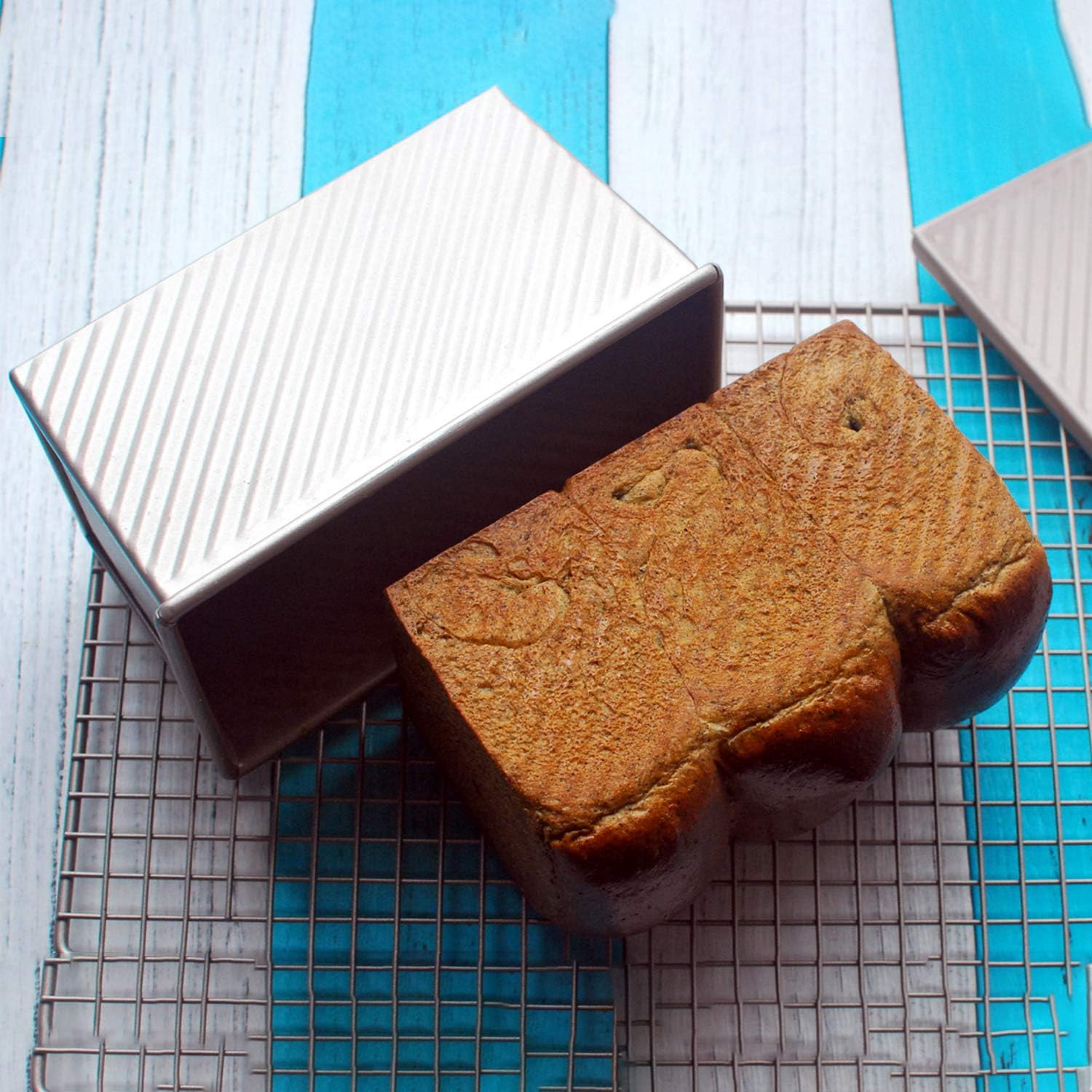 CHEFMADE Pullman Loaf Pan with Lid, 1Lb Dough Capacity Non-Stick Rectangle Corrugated Bread Pan Bakeware, Toast Mold with Cover for Oven Baking Cakes, Breads and Meatloaf (Champagne Gold)