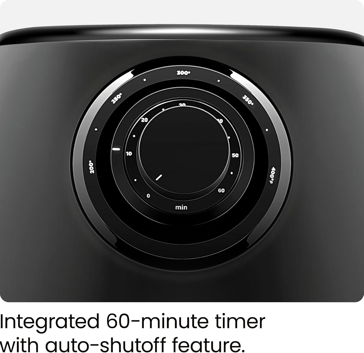 - PERFECTLY CRISPY RESULTS: Achieve perfectly crisp results for a wide variety of foods, with little or even no oil. The Dual knob controls both temperature & time; 60-minute integrated timer easily lets you air-fry everything from frozen veggies to mozzarella sticks, chicken or fries, and even re-heat yesterday's dessert. No need to worry about overcooking – once the timer is up, the fryer will automatically shut off.