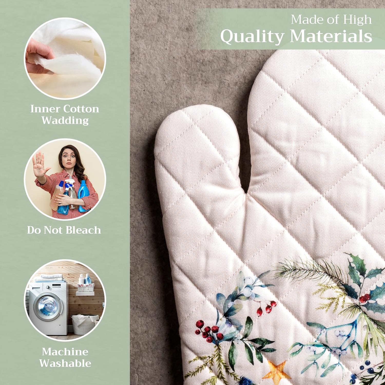 Maison d' Hermine Oven Gloves 100% Cotton Oven Mitt 7" x 13" with Loop Heat Resistant, BBQ, Cooking Gloves, Baking, Grilling, Kitchen, Handling Hot Pans (Pack of 1, Holly Time)