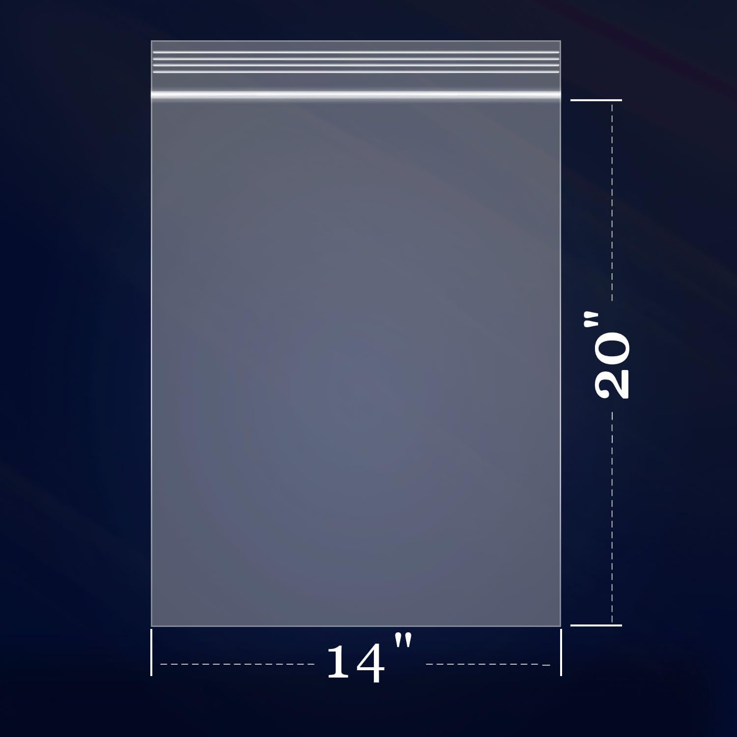 - [Specifications] -1000 Count 14" x 20" Usable Dimension (excludes the zipper), 2.0 Mil Thickness Reclosable Zip Poly Bags.We have various sizes for you to choose from.