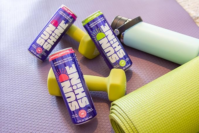 Sunshine Sparkling Energy Drink, Ginger Berry with Daily Essential Vitamins, 360mg of Electrolytes, 70mg of Natural Caffeine, 12 Fl Oz (Pack of 12)