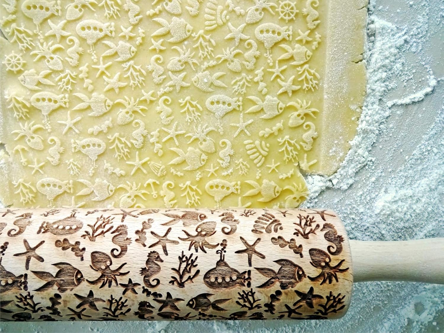 DEEP OCEAN EMBOSSING ROLLING PIN LASER ENGRAVED WITH DEEP OCEAN SYMBOLS GIFT FOR FRIEND
