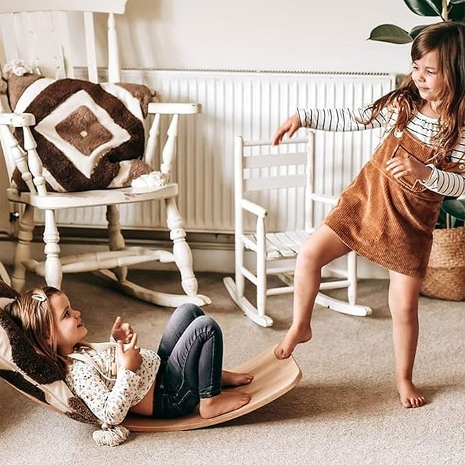 - š± UNLIMITED WAYS TO PLAY: The Wooden Balance Board is whatever you imagine it to be - a swing, a bridge, a shop, a cabin, a stepping stone, a racetrack, a lounge chair, fitness equipment, a puppet, a small football goal, a teeter popper or a tunnel.