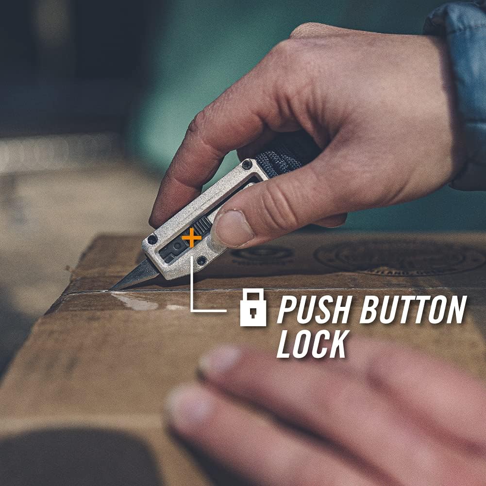 - 8-IN-1 MULTITOOL EDC KNIFE: Features an exchangeable standard No. 11 utility blade with slide lock, wire stripper, small flat driver, large flat driver, nail puller, pry bar, bottle opener, lanyard hole, and 550 paracord wrap