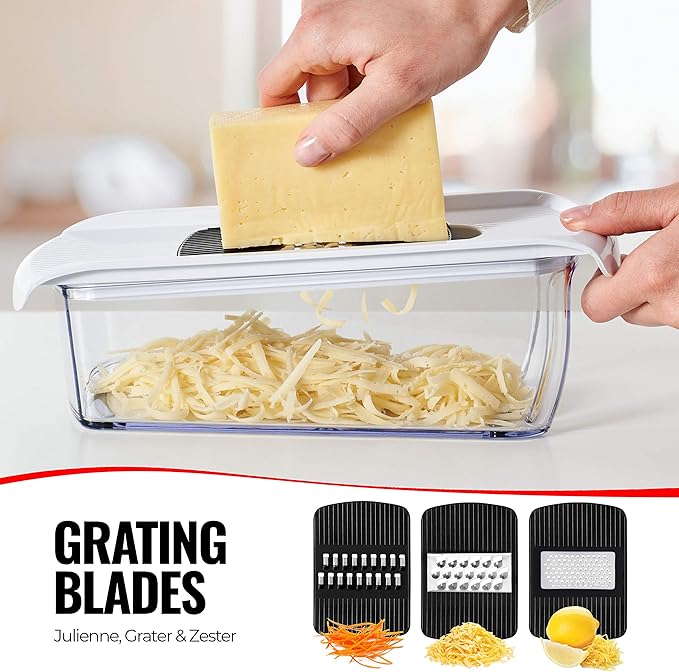 - No Mess and No Slips - Our catch tray makes cooking so much more convenient, no mess and no messing around! It makes cleaning effortless and our non-slip base also makes your slicing and grating that much easier.
