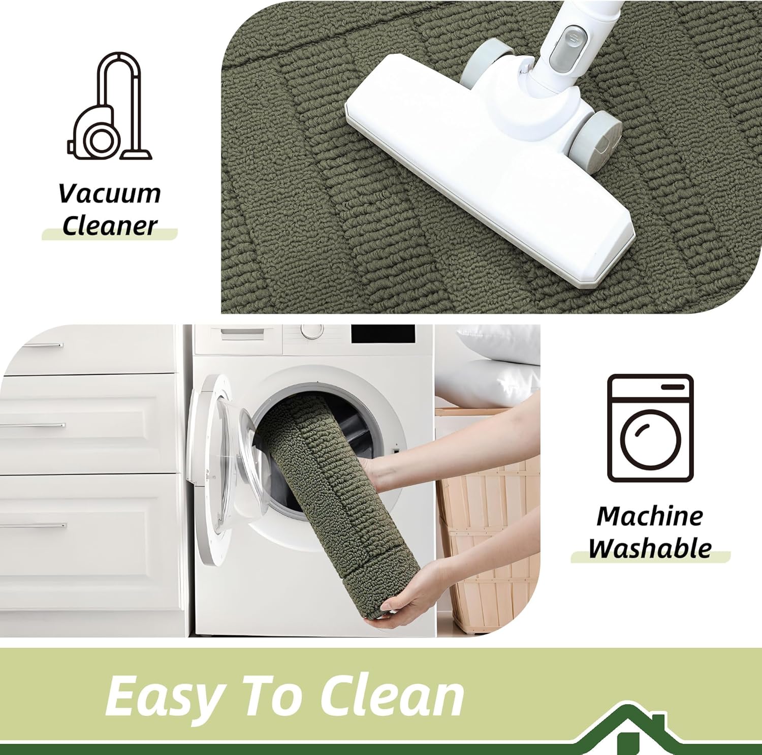 - Easy to Clean: Our kitchen rugs and mats non skid washable are easily cleaned.You can use the vacuum.Also,they are machine washable.Don't worry about fiber falling because of edge locking technology.Our kitchen floor mats can be durable and reusable for long time.Kitchen mat still maintains shape and colors.