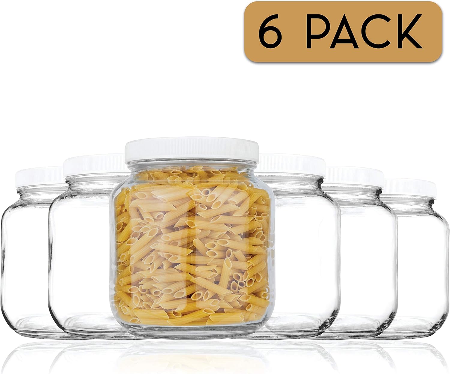 kitchentoolz 6 Pack of Half Gallon Mason Jars - Wide Mouth with Airtight Lid - Safe Container for Fermenting, Pickling, and Storing