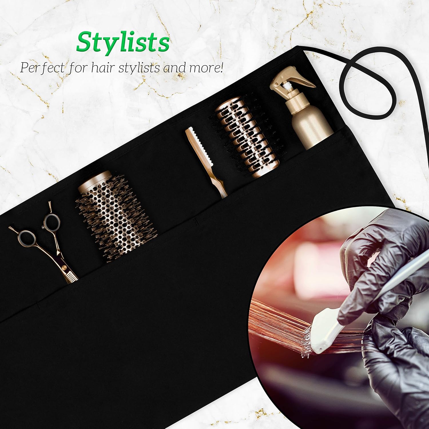 GREEN LIFESTYLE 3 Pack Server Aprons with 3 Pockets - Waist Apron, Waitress Apron for Women and Man, Water Resistant with Long Waist Strap Reinforced Seams, Half Apron (Black)