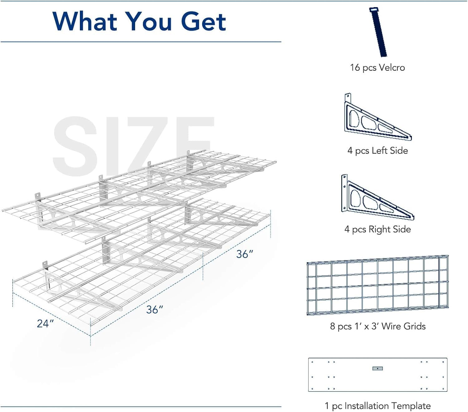 - This 2x6 ft garage shelf offers ample storage space for your garage, small pantry, or kitchen. (Composition of four 1'x3' shelves per tier, four pcs flat hooks included.)