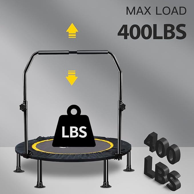 - 【400 LBS Weight Capacity】32 high-strength bungees, 3 mm thickened steel, and wear-resistant PP mat make the 2025 upgraded fitness trampoline can bear up to 400 LBS