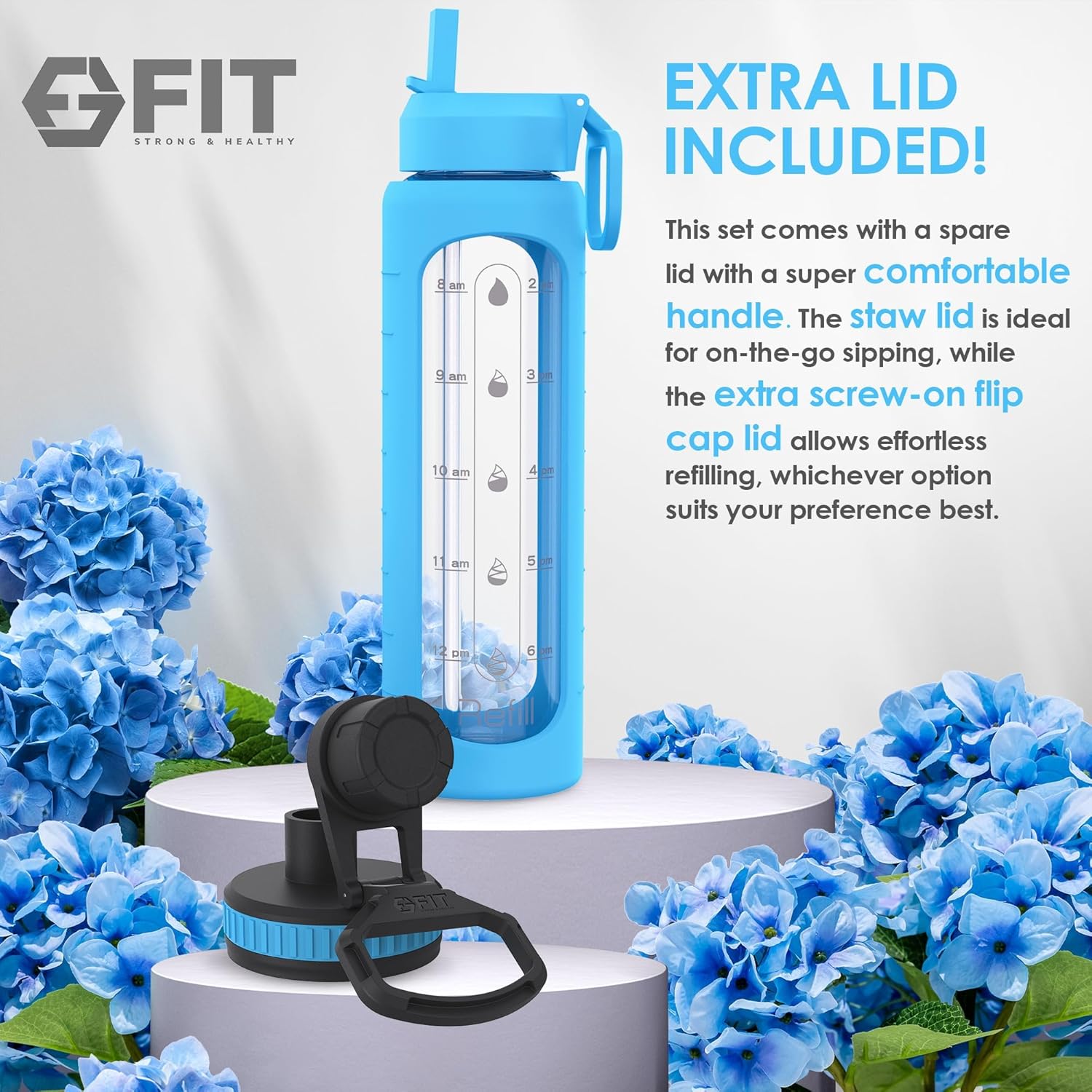 - Extra Lid Included: This bonus lid is designed for versatility and convenience; no worries if you misplace the straw lid; this spare lid ensures that you can continue enjoying your glass water bottle for an extended period of time; the straw lid is perfect for on-the-go sipping, while the extra screw-on flip cap lid allows for effortless refilling or whichever option suits your preference best