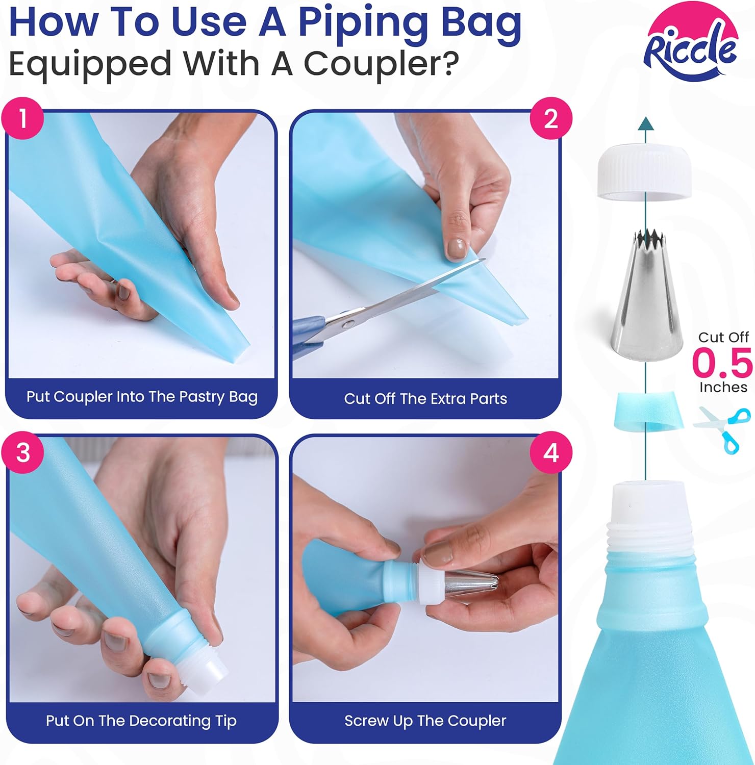 - Complete Cake Decorating Supplies: This all-in-one baking kit includes a rotating cake stand, 24 icing piping tips, 2 cake spatulas, 3 cake scrapers, 50 16 Inch disposable piping bags, 6 Cupcake Liners, 2 reusable pastry bags, 4 bag ties, and 2 couplers. Perfect for all your cake decorations.
