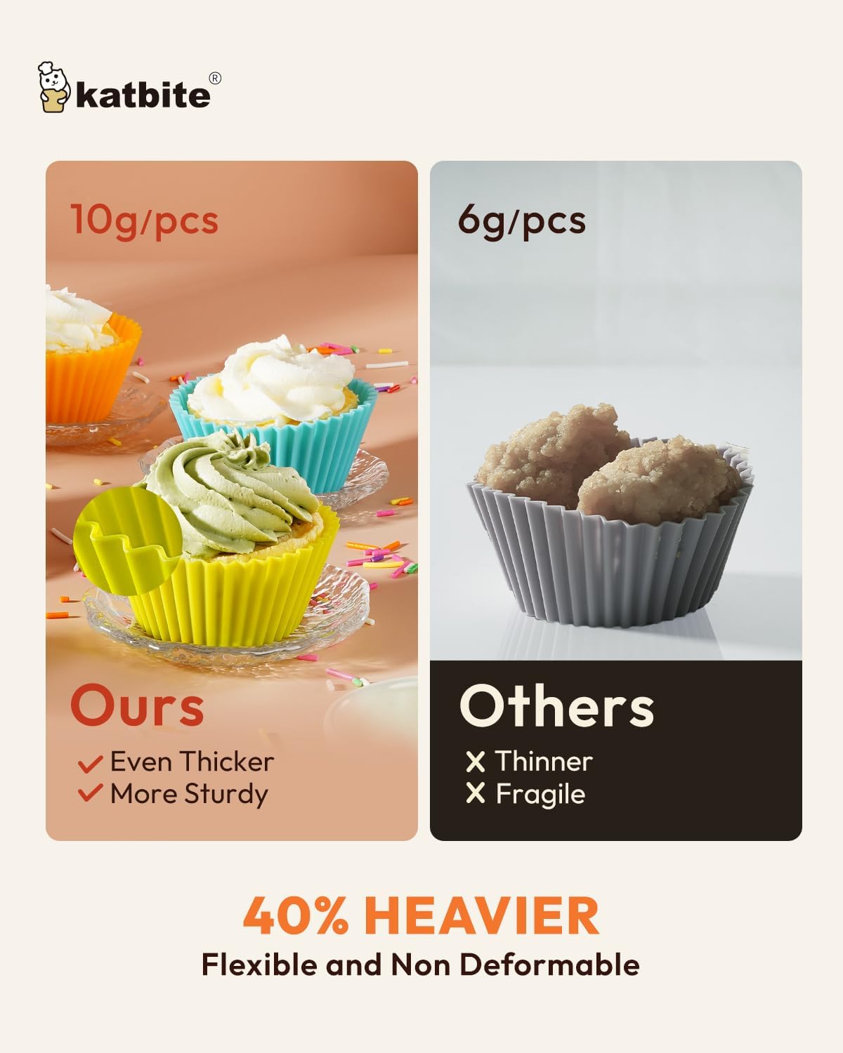Katbite Silicone Cupcake Liners 24 Pack - Non-stick Silicone Muffin Liners Set, Thick & Heavy Duty Cupcake Molds - Perfect for Party Halloween Christmas Bakery Supplies, Multicolor