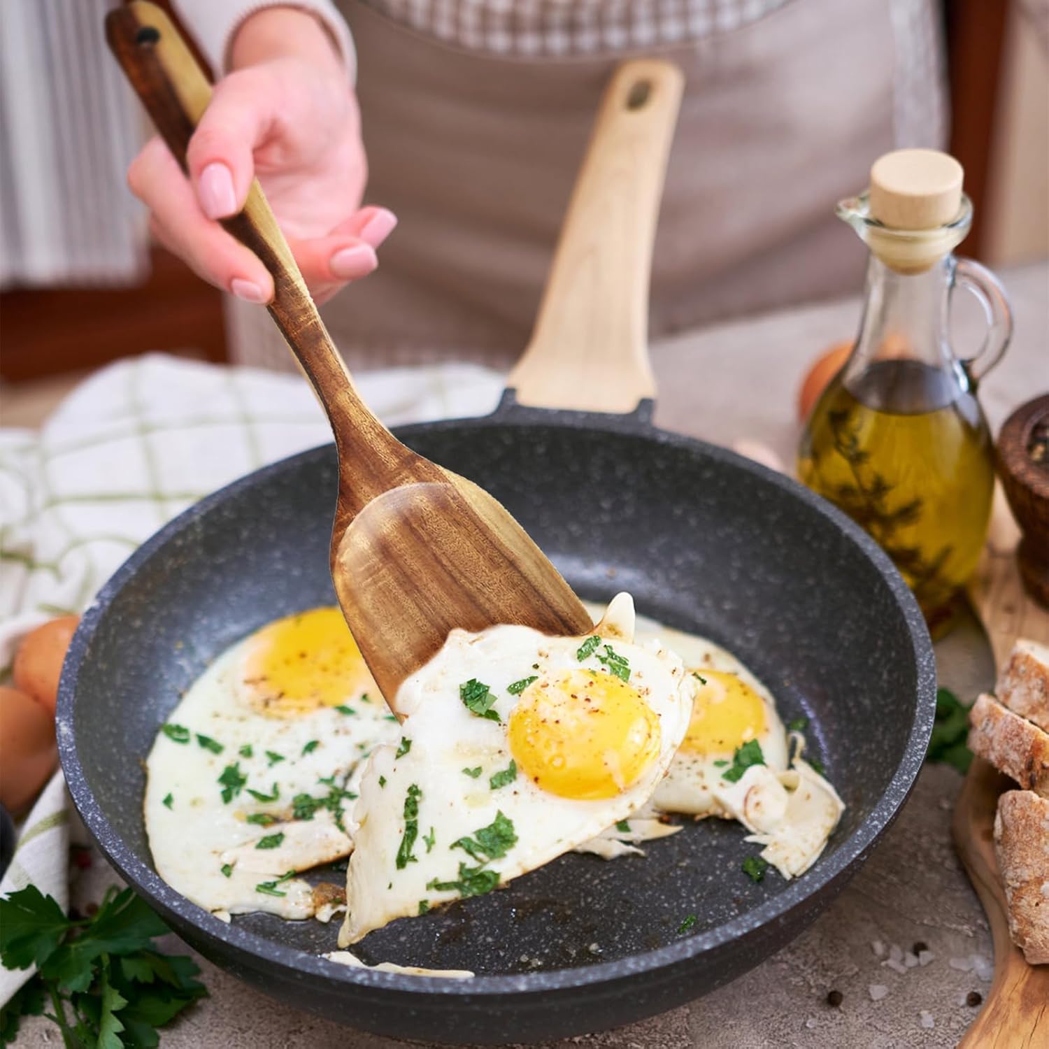 - 【Safe & Long Lasting】:It's made of natural wood, not metal, efficient in action, the spatula works well for tossing and flipping stir-fry ingredients without scratching nonstick woks or scraping seasoned carbon steel ones. The 13inch length keeps hands comfortably far from heat without sacrificing control and the material is moisture-resistant.