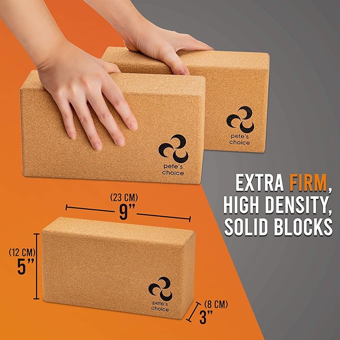 - GET HEALTHY : 2 extra firm CORK Yoga Blocks and 2 Cotton Yoga Straps (8 ft) included. Enjoy a more flexible, shapely and healthy body.