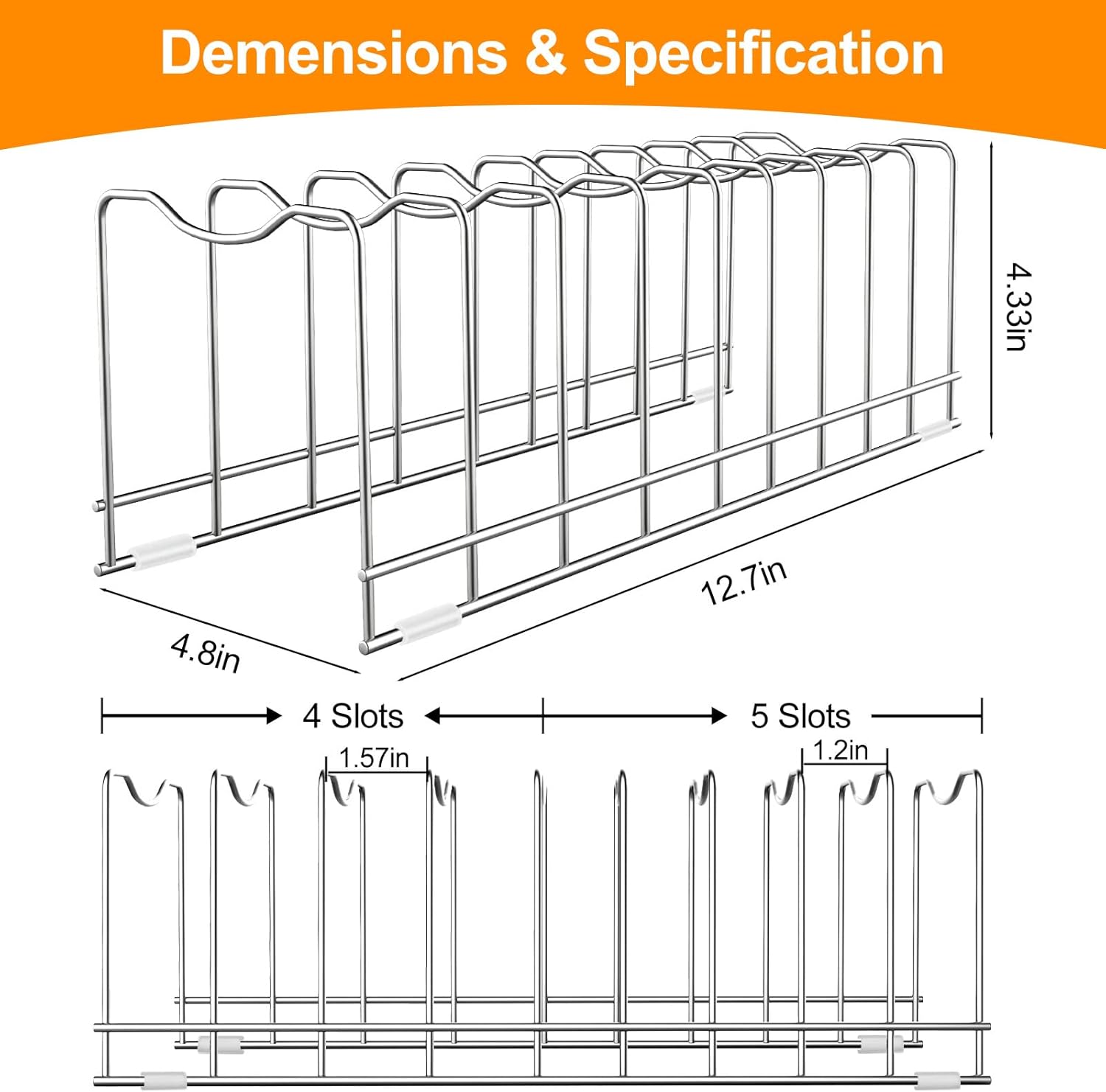 - ❤【Sturdy and Rustproof】:The pot lid organizer is made of sturdy stainless steel with Nickel finished, rust resistant and durable. This also has a high weight carrying capacity which supports heavier pans, bakeware, cutting boards.