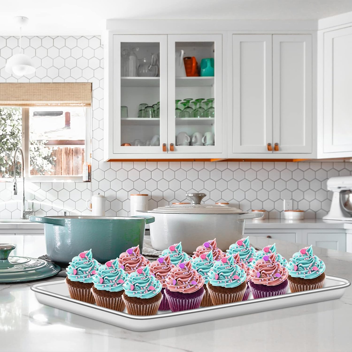 - š [SOLID CONSTRUCTION] Thick gauge with sturdy construction, these heavy-duty half sheet pans have a reinforced, rolled edge that provides extra strength to help resist warping in the oven. The cooling racks with raised feet facilitate air circulation for evenly baked goods. Feel sturdy and solid in hands, durable for serving many years.