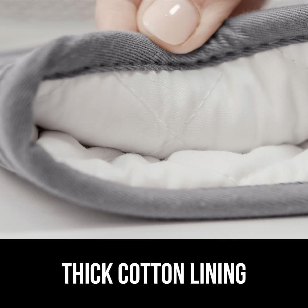 GORILLA GRIP BPA-Free Soft Silicone Oven Mitts, 14.5x8.3, Heat Resistant and Waterproof Cooking Gloves, Thick Cotton Lining, Flexible Gripping for Baking Grilling, Kitchen Potholders Set of 2, Gray