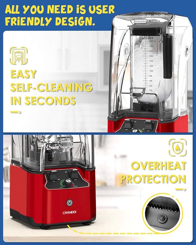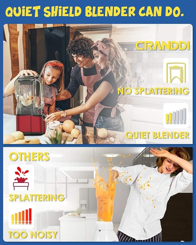 - [Quiet Blender] CRANDDI soundproof quiet blender is designed with a thinckened shield cover to reduce noise when blending. The noise reduction technology makes blending a quieter and more pleasant experience