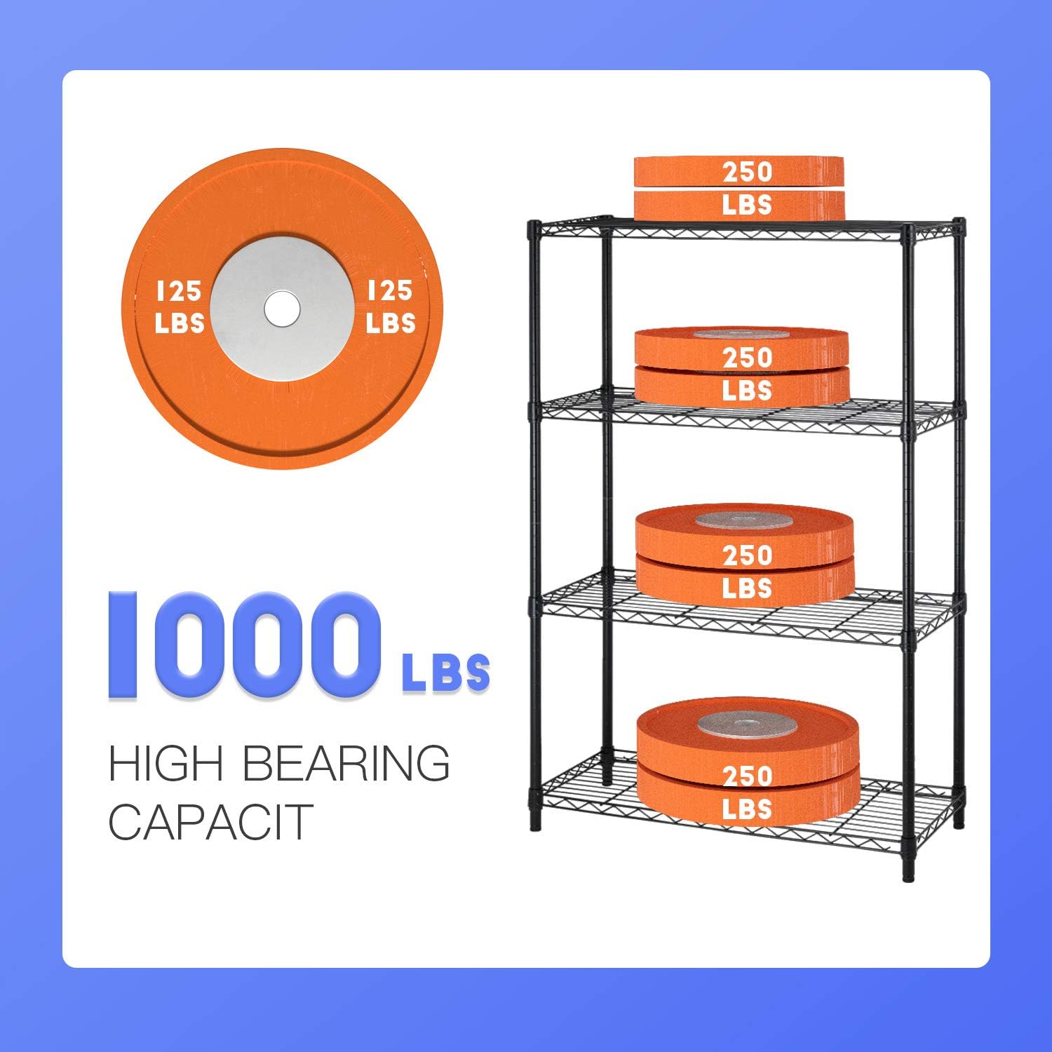 36" L×14" W×54" H Commercial Wire Shelving Unit Metal Shelf with 4 Tier Adjustable Layer Rack Strong Steel for Restaurant Garage Pantry Kitchen Garage,Black