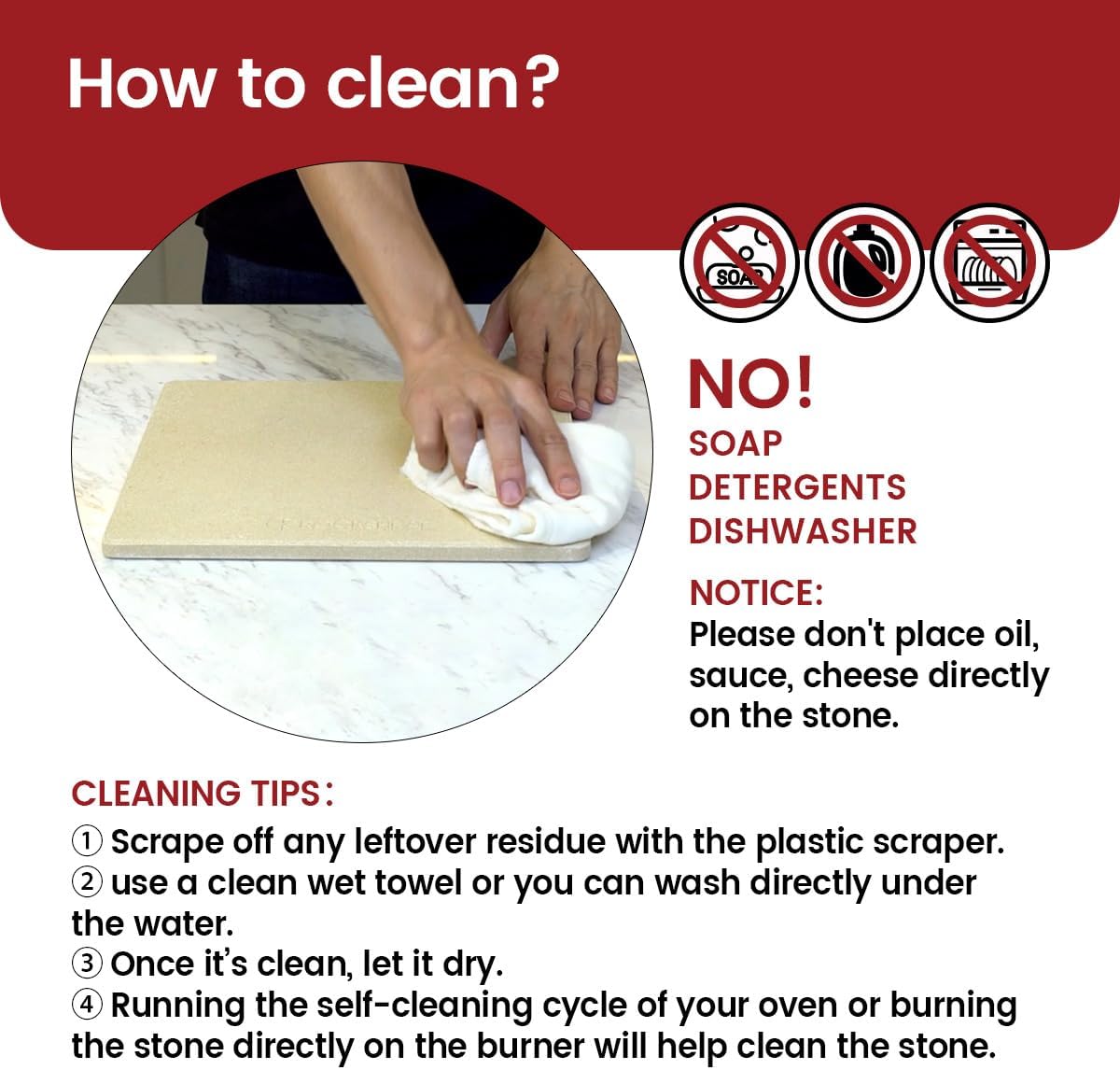 - READY TO USE. Seasoning or conditioning your stone in any condition is not required. Can be used in oven or on grill (gas or charcoal) directly.
