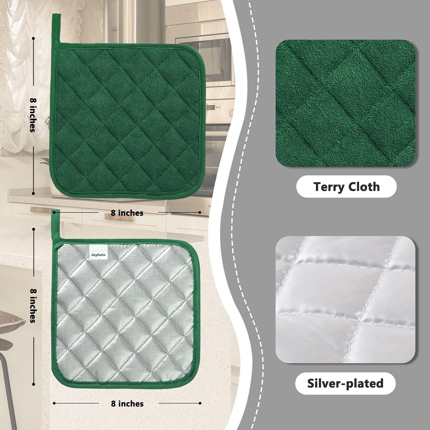 Joyhalo 6 Pack Pot Holders for Kitchen,Cotton Oven Holder with Great Heat Resistance,Non Slip Hot Pads for Kitchen Clearance,Dark Green