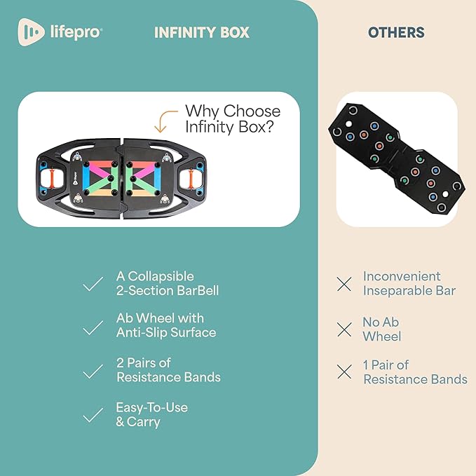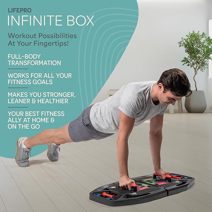 - FOR ALL AGES & FITNESS LEVELS: The InfinityBox home exercise equipment with a push up board is designed for both beginner & experienced gymgoers & give everybody the convenience of a home workout.