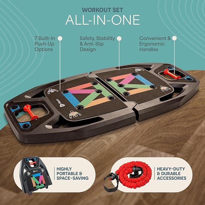 Lifepro Portable Home Gym with Push Up Training Board for Full Body Workouts Push Up Rack Board with 4 Resistance Bands - Home Workout kit Platform for Home Workouts