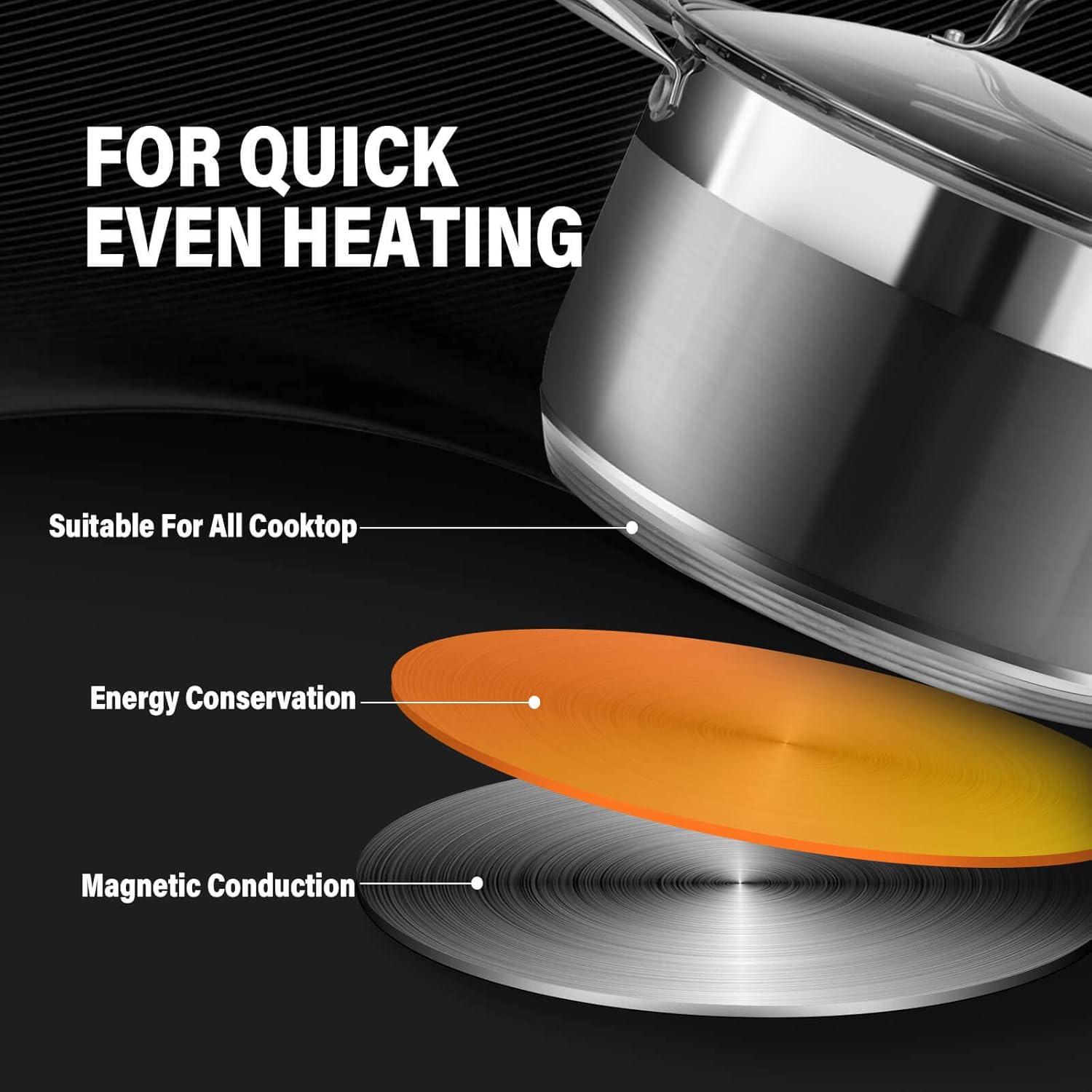 - ✅ 【Tempered Glass Cover】Tempered glass lid with steam vent to view food while cooking,this pot have a tri-ply bottom for even heating
