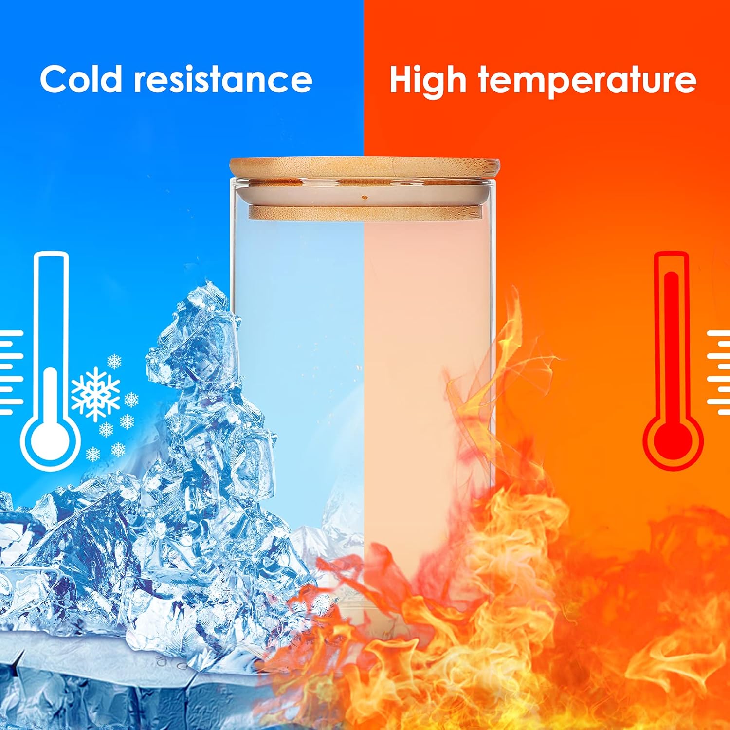 - High Quality: Glass jars made of high-borosilicate glass which features with great stability, higher hardness, heat resistance with better light transmission. Each jar cover comes with a food-grade silicone sealant ring, more effective in preventing fluid flow and the entry of gases and bugs